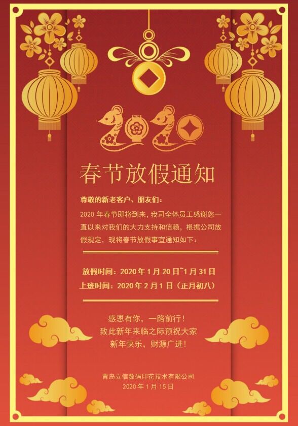 青岛立信数码春节放假通知
